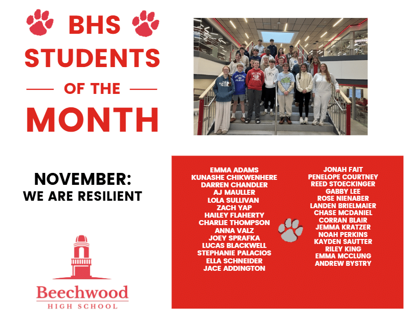 Congratulations to the BHS November Students Of The Month. These students exemplify the Beechwood Way core concept of being resilient. Way to go!
